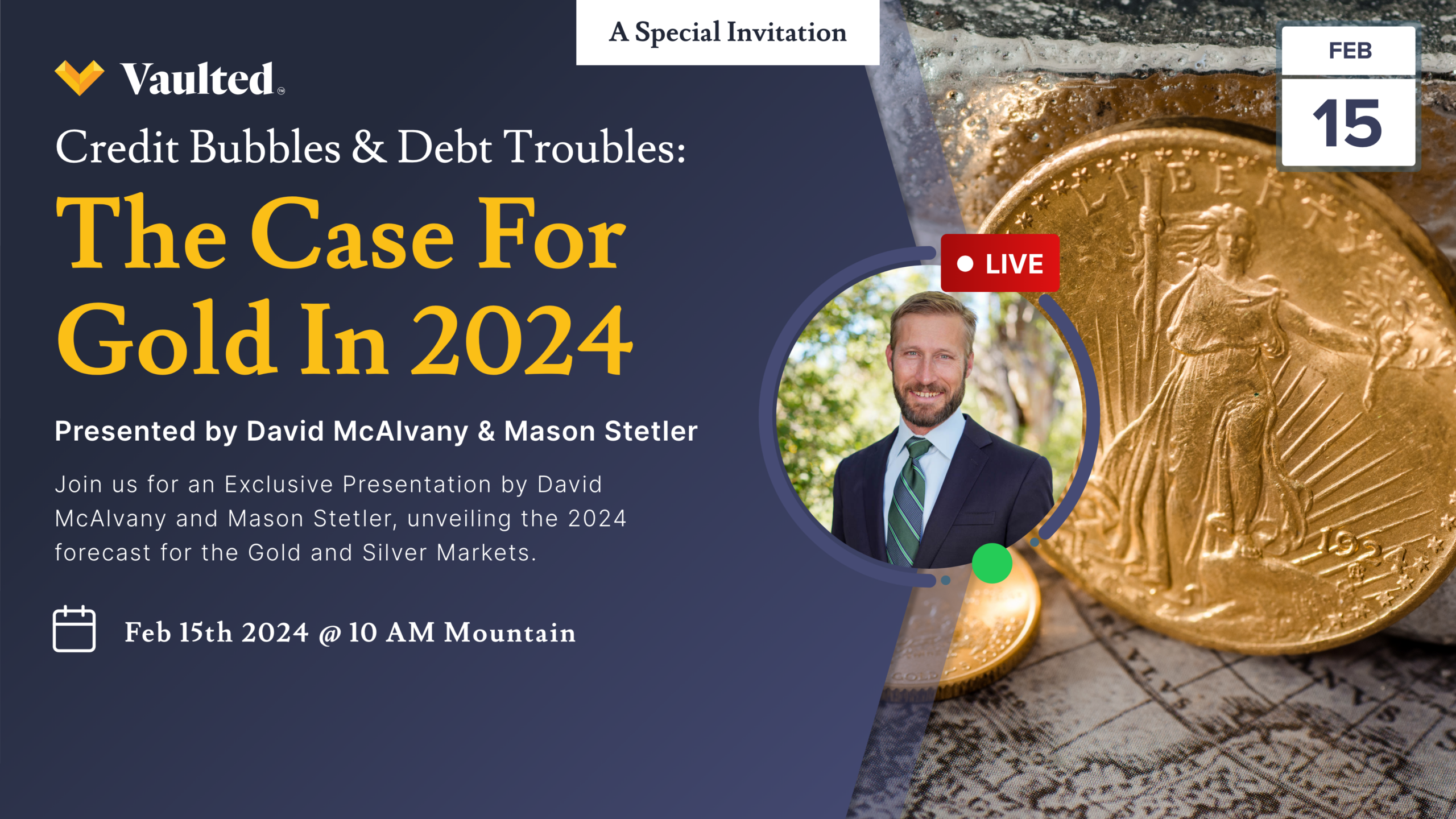 Watch the replay: David McAlvany, CEO of Vaulted, discusses the 2024 economic outlook and strategies for investors.